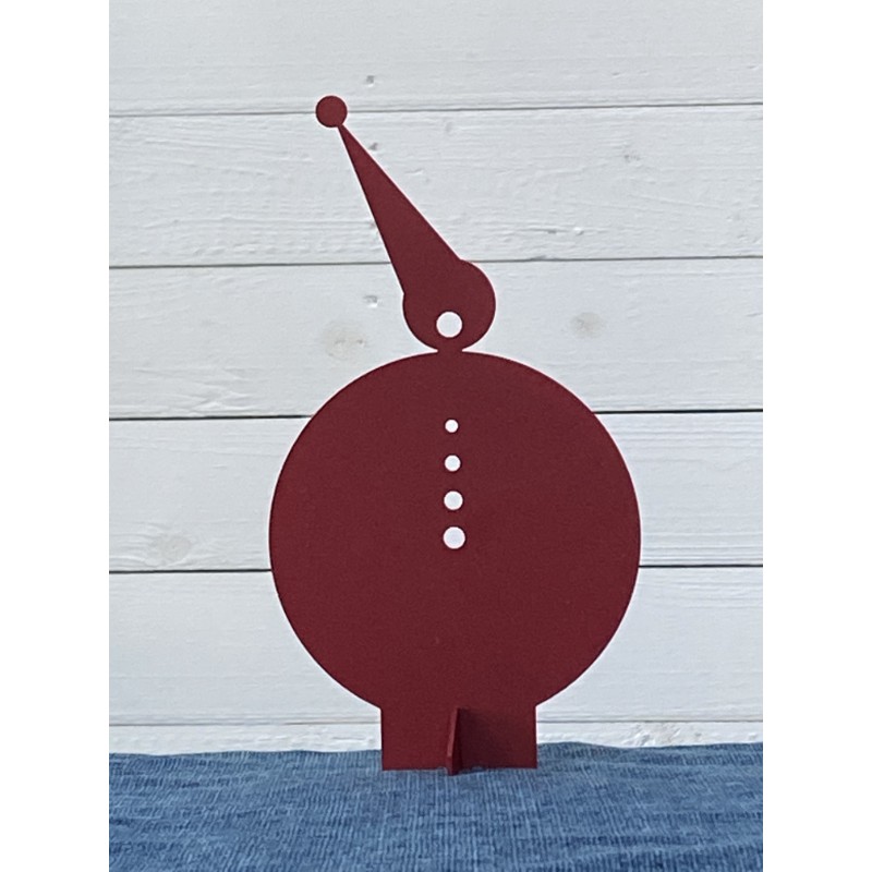 Tomtegubbe av cortenstål 22x12, med ett ståstöd. En tomtegubbe i vitlackad cortenstål. En gubbe som håller i flera år. Rolig, trevlig, god och glad. En prydnad att ha både inne och ute.