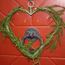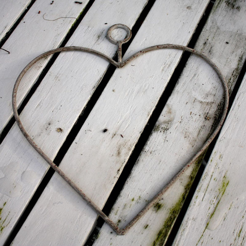 Hjärta av tråd med ögla för upphängning. Dekorera efter årstiden, höjd 28,5 bredd 26,5.