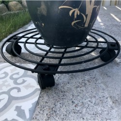 Krukfat på hjul, 35 cm från Garden Mind. Svartlackerat i tålig epoxylack, håller för minst 100 kg. Bra att kunna flytta stora tunga krukor både inomhus eller ute på terrassen och balkongen. Det ena hjulet går att låsa så de står still när de är på plats.