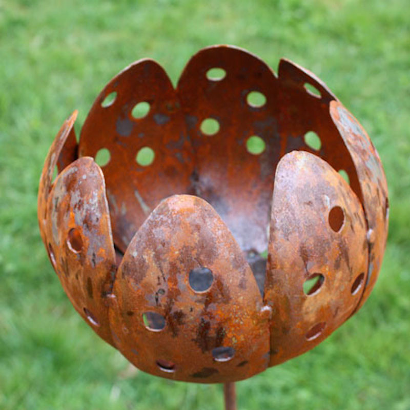 Marschallhållare i järn, en vacker blomma med hål som sprider ljuset fint. Blommans storlek ca 16 cm, höjd 104 cm.